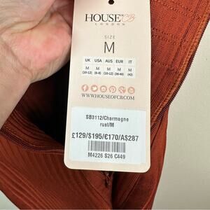 NEW House Of CB London Charmagne Rust Bandage Dress Womens M Ribbed Bodycon