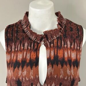 Evereve Gretta Midi Dress Mock Neck Tiered Pockets Brown Black Mesh Sz XL NEW