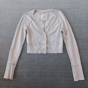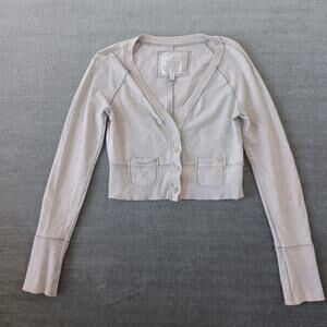 Y2K American Eagle Cardigan Sweater Women M Heather Gray Preppy Academia Knit