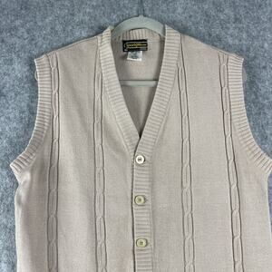 VTG Sears Sportswear Vest Mens XL Beige Knit Fisherman Grandpa Academia 70s 80s