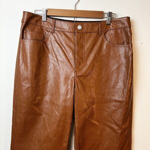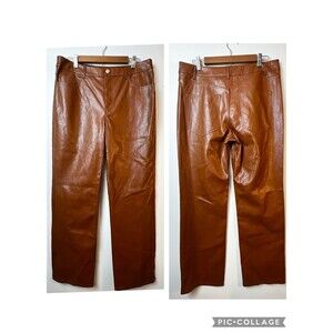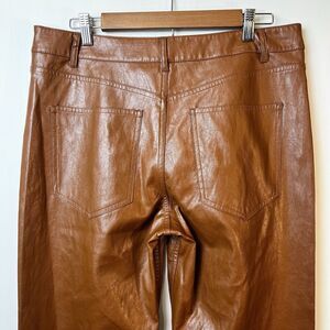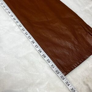 Chic brown leather pants with a sleek flare design. Ideal for a trendy, polished outfit.
