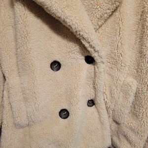 Free People Notched Teddy Peacoat in Ivory Shearling Faux Fur Womens Size Medium