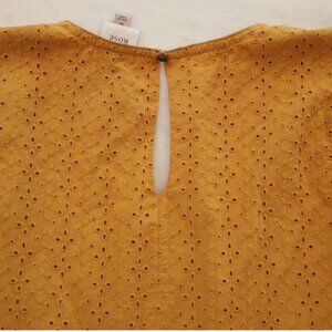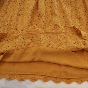 Ruffle sleeve, eyelet A-Line dress in mustard yellow