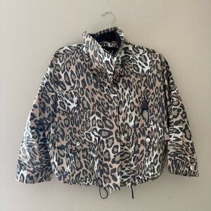 MONCLER Ivoire Giubbotto Plomb Leopard Jacket. Size 0. Excellent Condition- minimal signs of wear; hardware has minor scratches