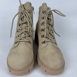 * Features/materials -Faux Leather ivory/Tan, Round Toe, Low Ankle Boots