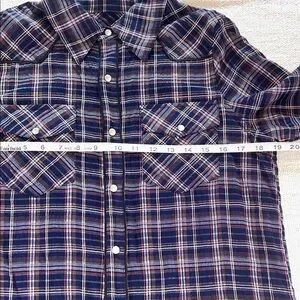 Elevate your style with this chic plaid button down shirt. Featuring intricate beaded cuffs, it's perfect for any occasion. The classic design and detailed accents make it a must-have in your wardrobe.