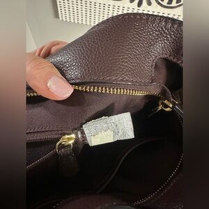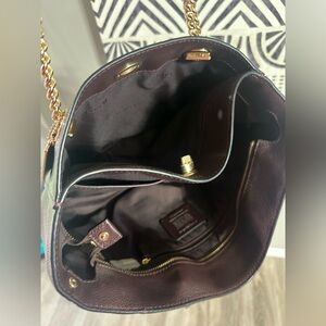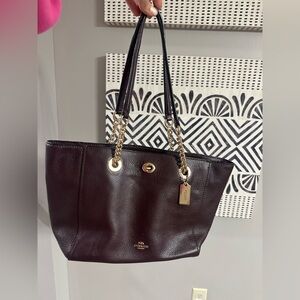 Coach Turnlock Chain Tote Burgundy Pebble Leather