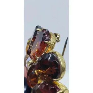 Vintage Brooch RARE Cut Scalloped Rhinestones Molded Glass Flower Gold Wash
