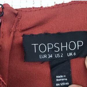 TopShop Size 2 Rust Orange Lace Bodycon Tunic Mini Dress Floral Embroidery