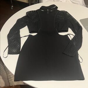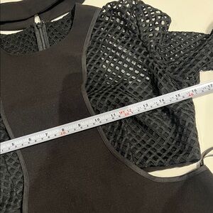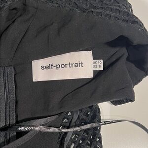 This elegant Self Portrait black dress features stylish mesh sleeves, perfect for any occasion. Its sleek design offers a modern and sophisticated look. NOTE: Dress has been altered from a midi length to mini. Worn once in great condition. See pictures for measurements. Size UK 10, US 6. Would fit and XS, S.