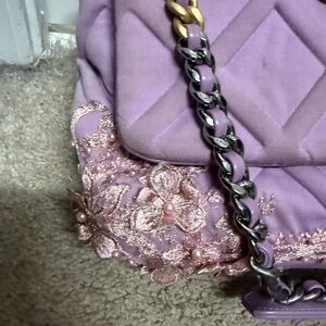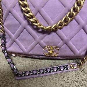Chanel 19 fabric Lavender Quilted Shoulder Bag with Gold Chain