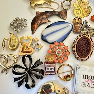 All pictures and in good condition. Metal, wood, glass, some handmade. Gold and silver tone. Good preowned condition.