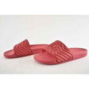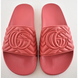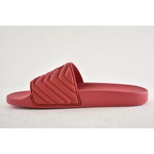 Gucci Deep Coral Red Rubber Quilted GG Logo Flat Pool Slide Slip On Sandal 36
