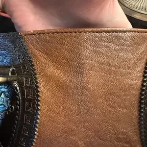 Wear to the corners but piping is good. Small dark smug on leather, see pictures.
