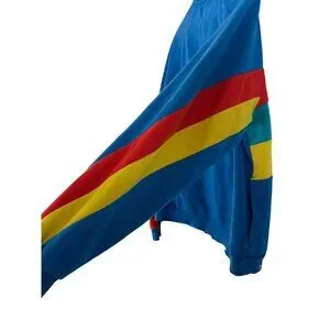 This Lego X Target jacket features multicolor stripes in red, yellow, teal, and blue on a comfy cotton-polyester blend. Its full-zip closure and vibrant design ensure style and convenience.