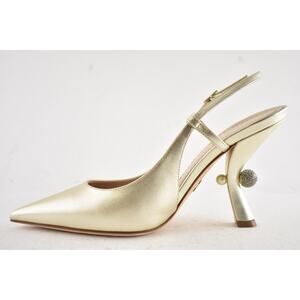 Dior Tribales Jadior Pale Gold Laminated Leather Slingback Sandal Heel Pump 37.5