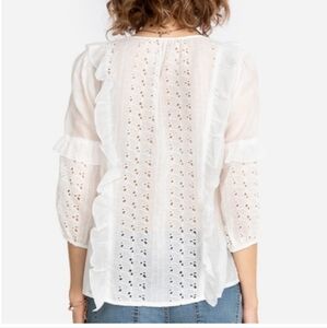 NWTs Jade Johnny Was Antique White Sarai eyelet ruffle blouse top. Size S. Silk cotton blend. New with tags! Retail price $220.