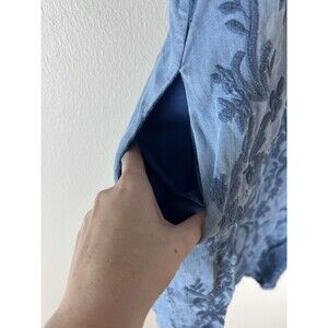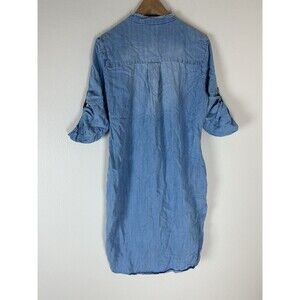 Reba Long Sleeve Denim Shirt Dress Floral Embroidery Womens Size M Blue Chambray