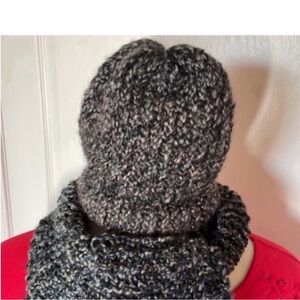 Handmade Knit Beanie Scarf Set Black Gray Teal Mauve Hat Coord Set Winter Gifts