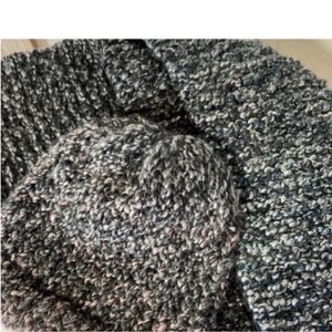 This 98% acrylic blend variegated yarn is so neat. You will see charcoal gray, light gray, black, dark teal and a wine mauve pink color. Could be for a man (not large headed) or woman unisex.