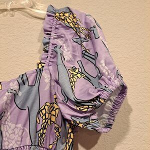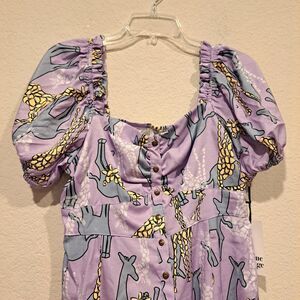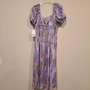 Unique Vintage Dress Purple Wild Hearts Run Free Giraffe Print Midi L 10-12 New