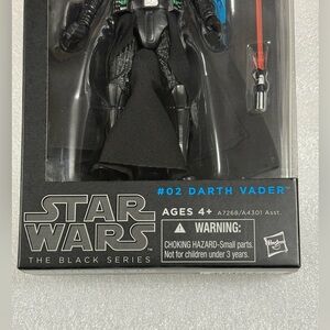 Get your hands on the iconic Star Wars Black Series #02 Darth Vader Action Figure from Hasbro. This original, boxed, 6-inch figure is the perfect addition to any Star Wars or action figure collection. With its striking black color and intricate details, this figure is sure to impress fans of all ages.