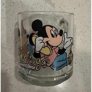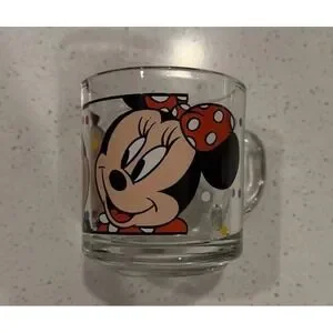 Add a touch of vintage charm to your collection with these Anchor Hocking glass cups featuring the beloved Disney characters, Mickey and Minnie Mouse.