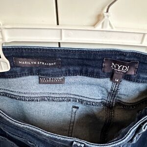 Stylish dark blue flare jeans by NYDJ. Perfect for a chic look. Comfortable and versatile.