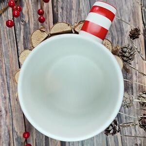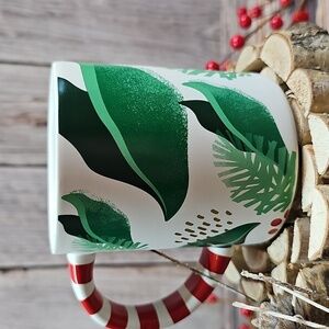 2019 Starbucks ceramic Christmas mug with the red and white candy cane stripe handle.