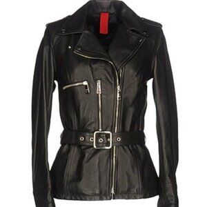 Super sleek Auth BNWT COVER ORCIANI Black Leather Long Moto Jacket