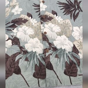 Used Condition. Flaw is small tear below Button, pictured. Caribbean Joe 100% Silk Hawaiian Button Down Floral Printed Shirt. Size XXL