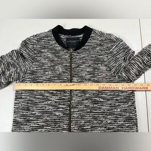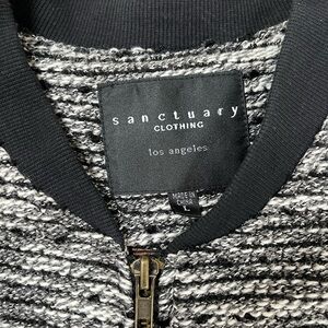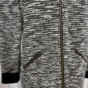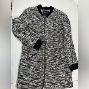 Sanctuary Women's Black and White tweed bomberJacket, long, zipper front ,size L