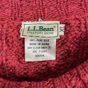 Vintage L.L. Bean 100% Silk Cable Knit Sweater Women’s XL Cranberry Fisherman