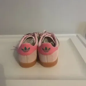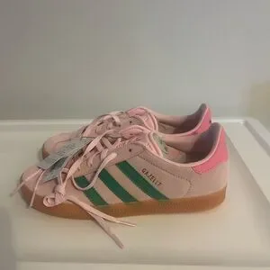 Adidas Gazelle Pink Suede Sneakers with Green Stripes