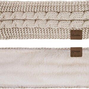 2 Pack Headbands for Women Winter Warm Cable Knit Ear Warmer Thick Head Wrap Fuz