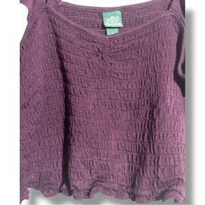 New with tags removed, plum color crop top with ruffled straps, rouching at bust, smocked front and back