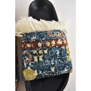 Chloe Kerenin Kilim Rug Tapestry Fringe Multicolor Slide Slip On Flat Sandal 36