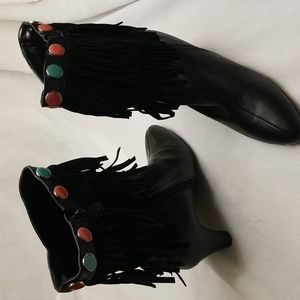 Hot in Hollywood New Black Leather Fringed Heel Boots, 8M, $45