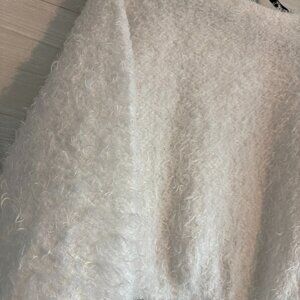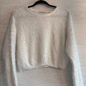 Zara Sweater Womens S White Fuzzy Shaggy Eyelash Knit Cropped Long Sleeve