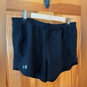Under Armour black Fly-By 3” shorts, bikini style lined, mesh detail on the side, drawstring. Perfect condition