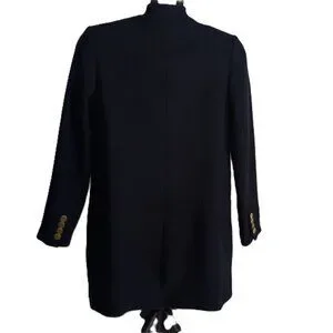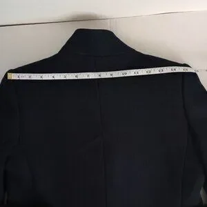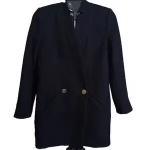 Chic and timeless Mango wool blend double breasted mid-thigh suit coat in classic navy blue. Features a tailored fit, 4 button detail on sleeves, and front pockets for a polished, sophisticated look. Perfect for work, travel, or everyday layering. Women’s size XXS in excellent preowned condition — clean, elegant, and ready to wear.
