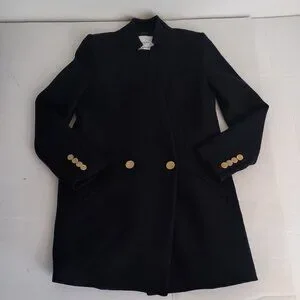 Mango Wool Blend Double Breasted Mid-Thigh Suit Coat Navy Blue Women’s XXS EUC