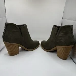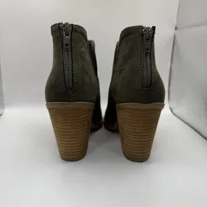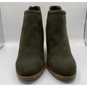 Joie Kayden Ankle Booties Women's Size 7.5 M Faux Suede Vegan Olive Chunky Heel
