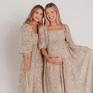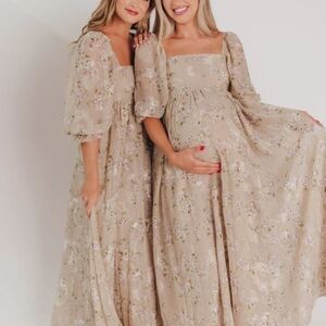 Mona Maxi Dress in Beige/Brown Floral - Bump Friend D