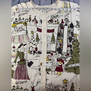 CJ Banks Cream Cotton Retro Holiday Graphics Festive Teacher Cardigan 1X