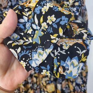 Lucky Brand Black Floral Maxi Dress Size Large Sheer Sleeves Teired V-Neck