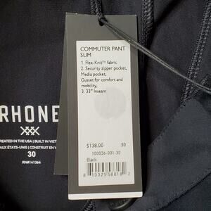 Rhone Men's Size 30X32 NWT Commuter Pants Slim Straight Leg Black 100036