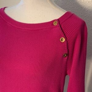 Stay stylish and comfortable with this vibrant pink sweater. Featuring elegant button details, it's perfect for any occasion.