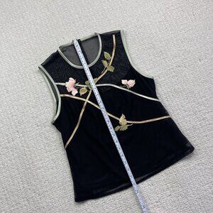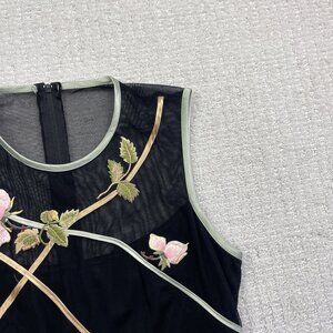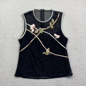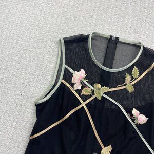 Joseph Ribkoff Sheer Sleeveless Top Womens Black Floral Embroidery Cocktail Read