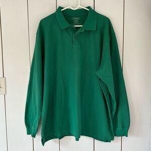 LL Bean Men's Premium Double L Polo Shirt Long Sleeve Green XL Cotton